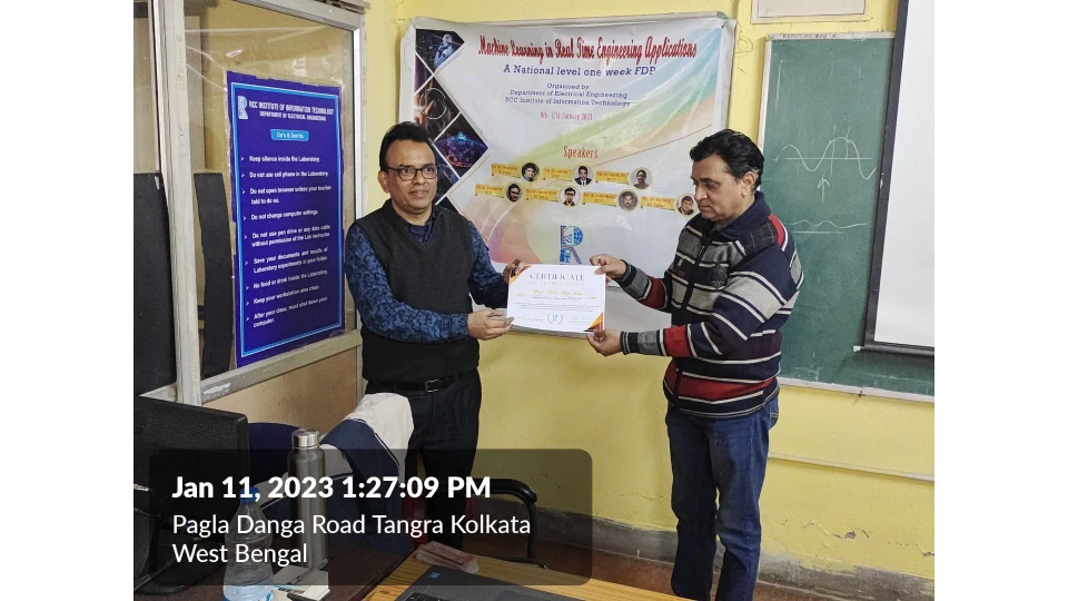 The Department of Electrical Engineering (which is now accredited by National Board of Accreditation (NBA), New Delhi) started its journey in the year 2009 under RCCIIT and the first batch of students graduated in the year 2013. It is situated in the ground floor of the new campus of the Institute.